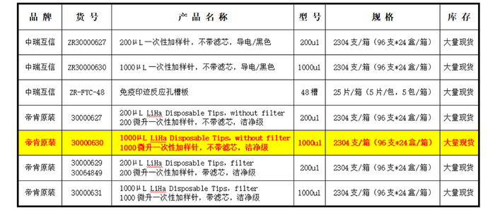 1、配套帝肯Tecan部分系列儀器的標準耗材。